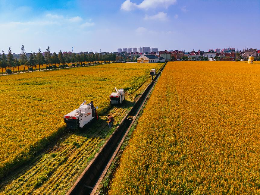 10月23日,天氣晴好。寶山區羅涇鎮花紅村千畝稻田邊,羅涇鎮經濟發展服務中心副主任吳剛看了眼穀穗,心中已經有了答案,“可以開鐮了!”