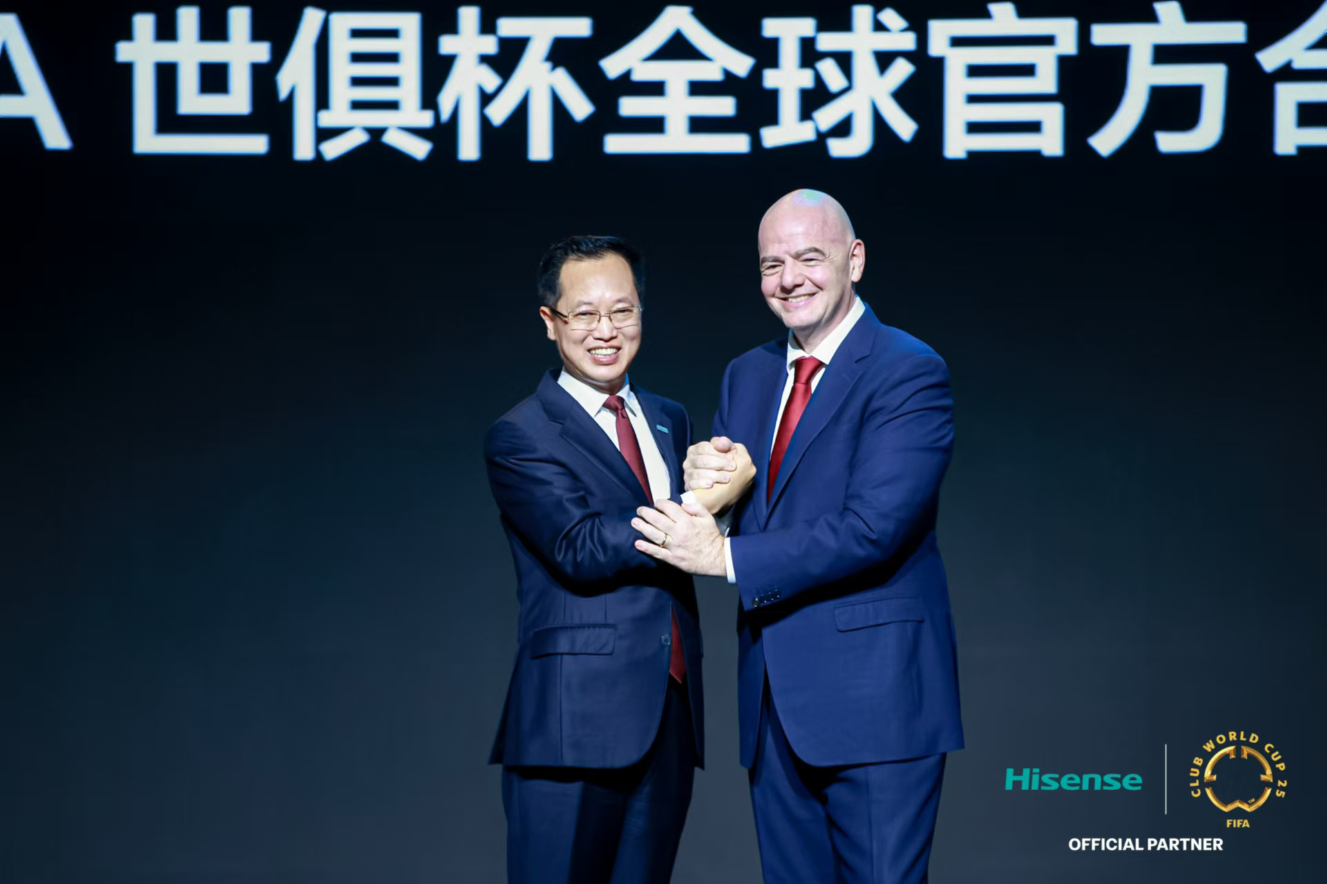“海信集團正式成為2025國際足聯俱樂部世界盃(“世俱杯”)首個全球官方合作伙伴”,10月30日下午,海信集團董事長賈少謙與國際足聯主席詹尼·因凡蒂諾在上海簽署合作協議,共同宣佈了備受關注的新版世俱杯的第一例商業贊助。