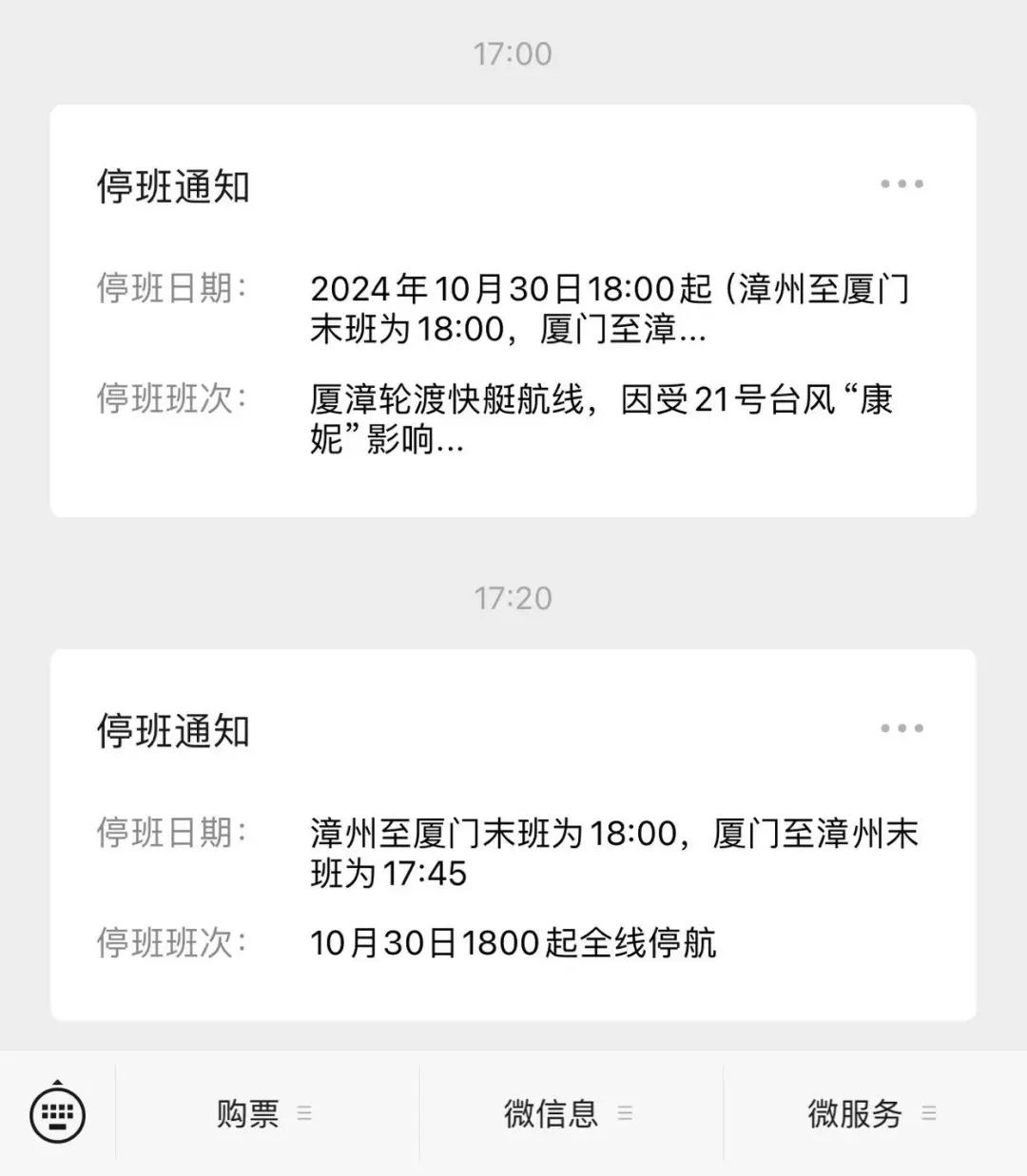 廈漳輪渡10月30日18時起全線停航