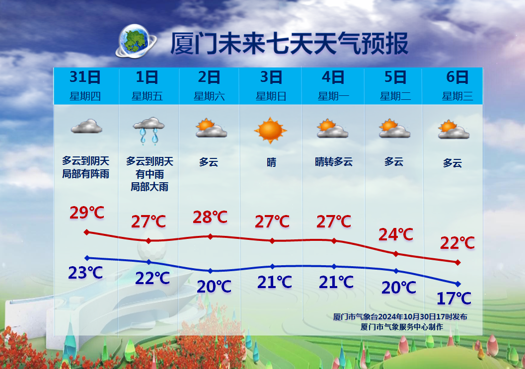 廈門會出現明顯的風雨天氣