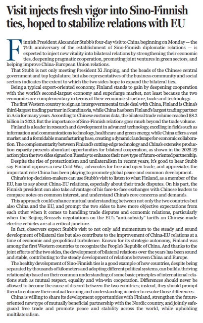原標題:Visit injects fresh vigor into Sino-Finnish ties, hoped to stabilize relations with EU