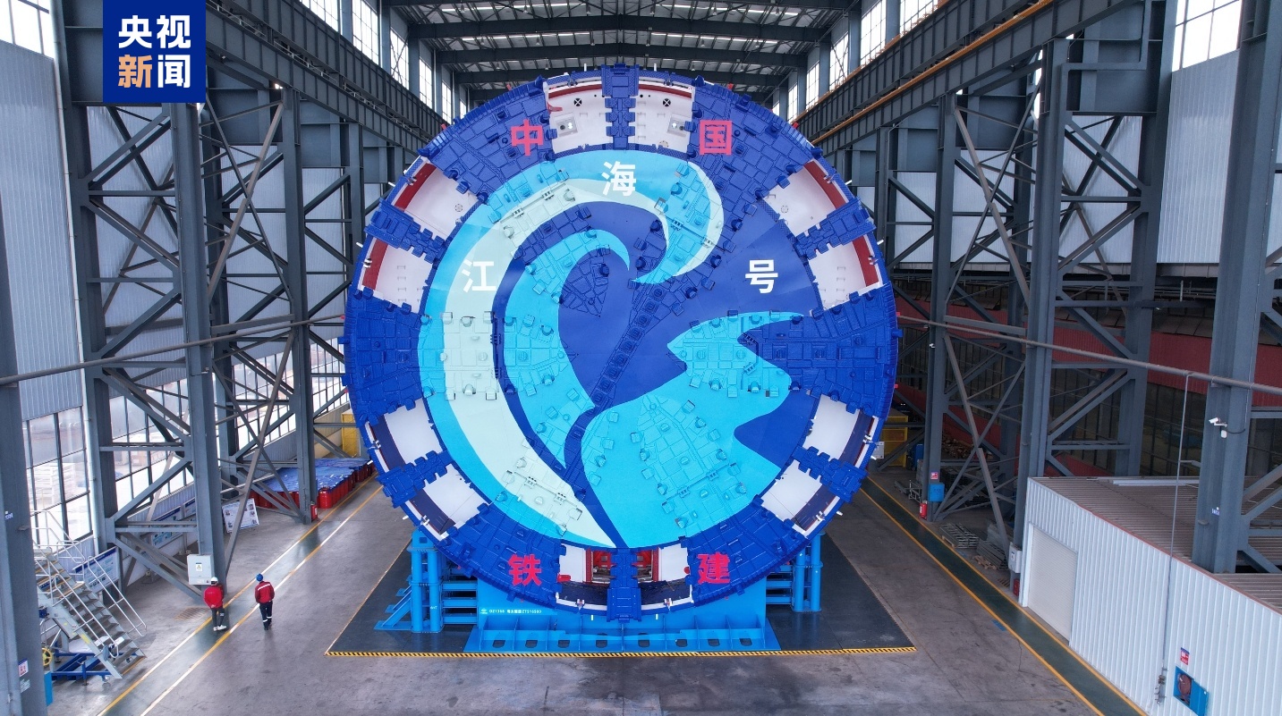 *這台盾構機取名為“江海號”,*由中國鐵建重工集團、中鐵十四局集團聯合打造,整機長約145米,總重量約5000噸。記者在現場瞭解到,“江海號”是以海太長江隧道工程跨越長江、毗鄰大海兩個意向融合命名,其刀盤塗裝有向前進擊的蔚藍色巨浪,寓意着盾構機將聚力潛行、通達江海。