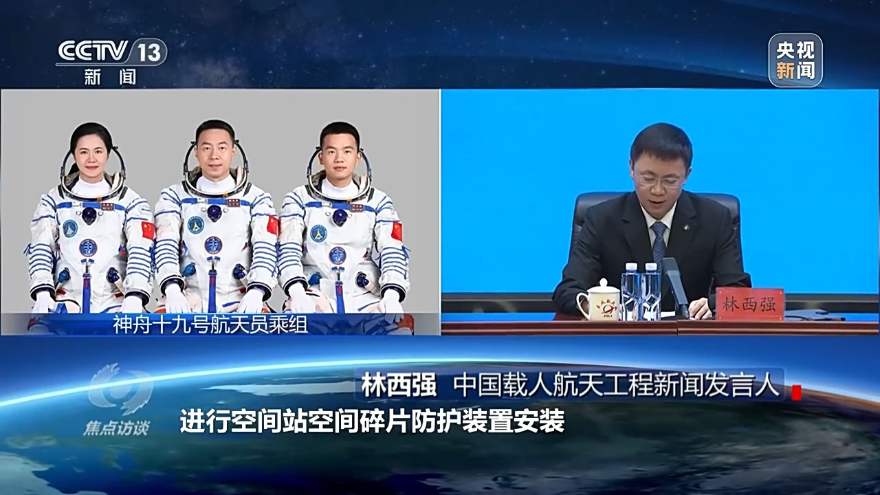 *中國載人航天工程新聞發言人 林西強:*此次任務在空間站駐留約六個月,開展空間科學與應用實(試)驗,實施航天員出艙活動及貨物進出艙,進行空間站空間碎片防護裝置安裝,艙外載荷和艙外設備安裝與回收等任務,開展科普教育和公益活動以及空間搭載試驗。