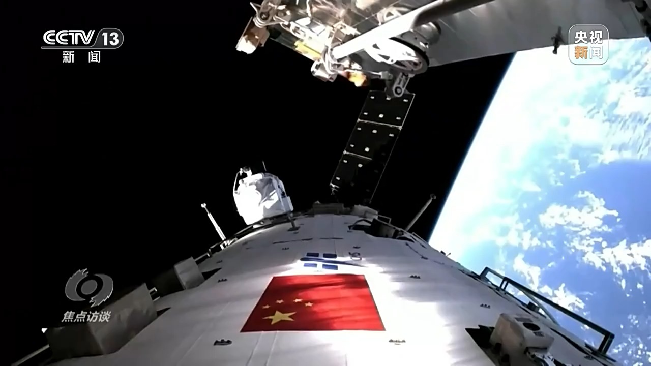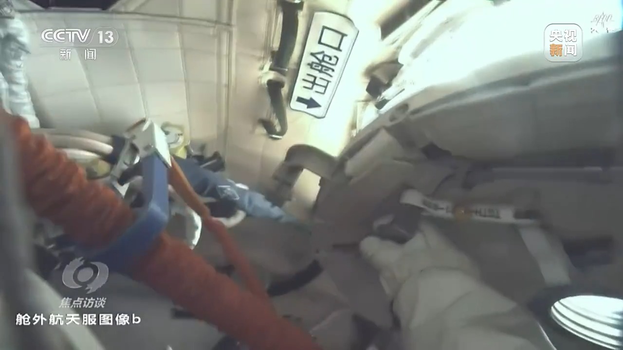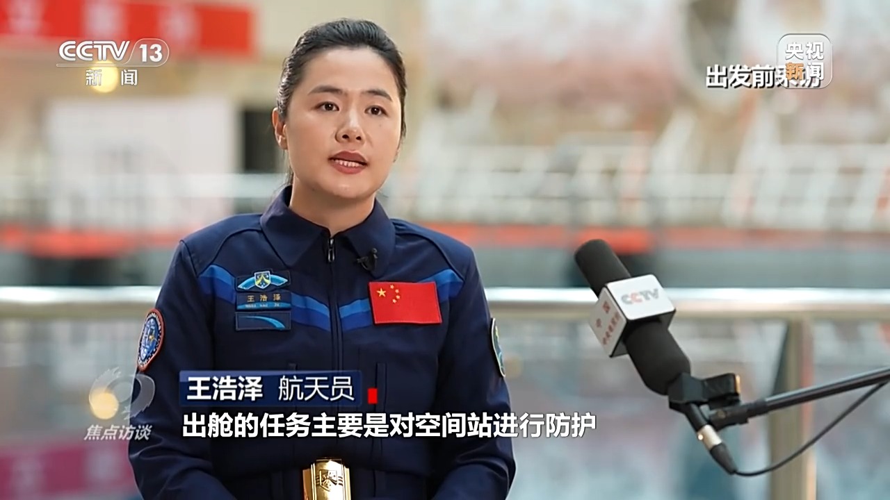 *航天員 王浩澤:*出艙的任務主要是對空間站進行防護。因為在空間裏面運行,空間站它有可能會受到微流星、空間碎片干擾,甚至是衝擊,所以我們要對艙外的一些重要管路、設備進行防護。