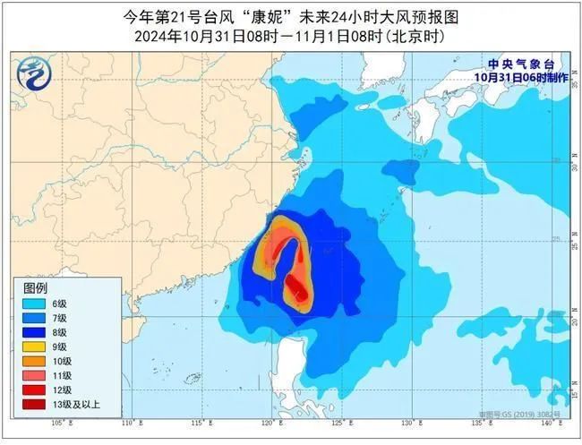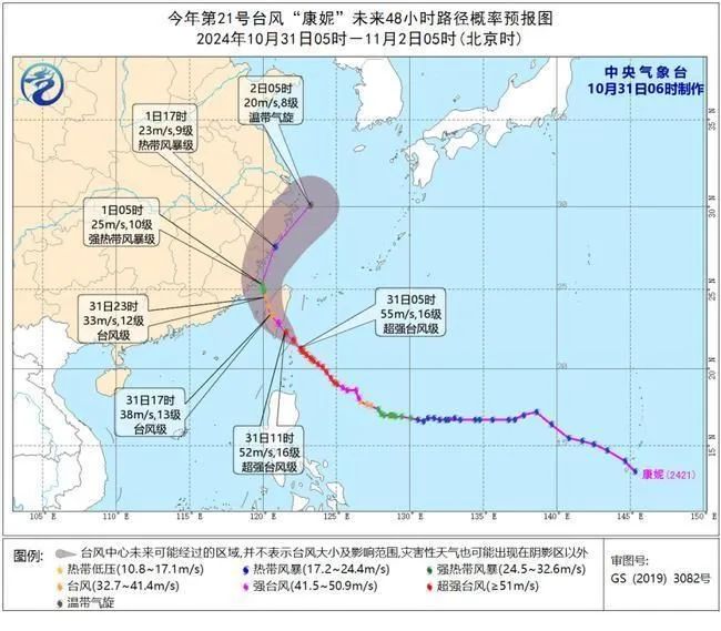 中央氣象台10月31日06時繼續發佈颱風橙色預警: