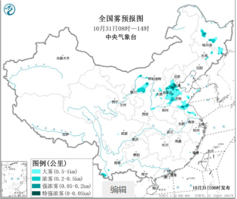 中央氣象台預計,今天早晨至上午,北京南部、河北中南部、河南北部、山東西部和南部、江蘇北部和中部、山西中部、內蒙古河套地區、黑龍江中南部等地有大霧天氣,部分地區有能見度不足500米的濃霧,其中,河北中南部、山東西部和南部、江蘇北部和中部等地的部分地區有能見度低於200米的強濃霧。