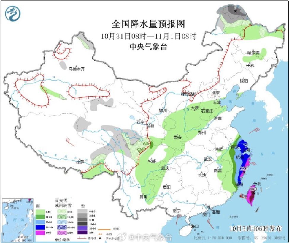 另據上海市天氣介紹,此次颱風對上海的影響更多體現在降雨方面。31日傍晚到11月1日,上海市有大暴雨。降水具有極端性,有可能成為1981年以來11月最大降水過程。