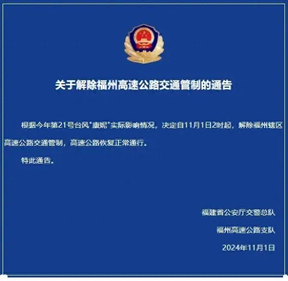 鑑於今年第21號颱風“康妮”逐漸遠離福清市,經研判,市防指決定,11月1日7時起在全市範圍內結束“三停一休”,有序恢復各類生產活動和生活秩序,各鎮(街)做好災後樹木倒伏、道路清障清理及衞生消殺等工作。
