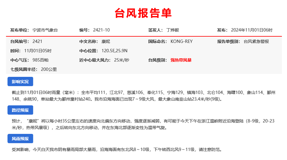 “康妮”或在浙江沿海二次登陸!寧波全域預警!緊急通知:停運停航!
