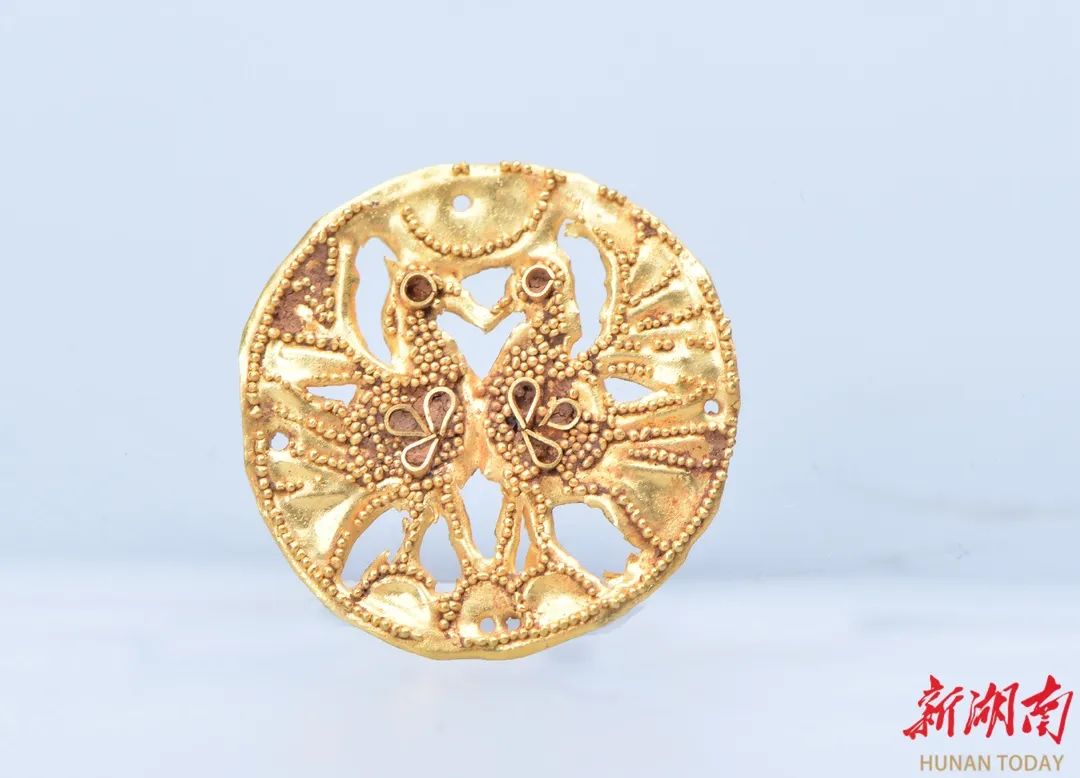 出土的雙鳳圓形金配飾。