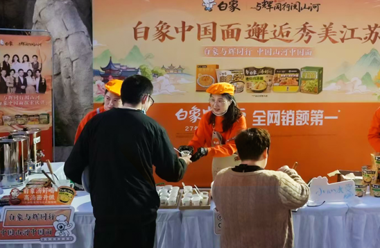 在線下活動方面,白象高湯麪館車也一路與輝同行,在宿遷街頭限時營業。在寒冷的冬日裏,白象用一碗熱氣騰騰的高湯麪温暖了每一位到場的朋友。現場特別設置的試吃區與互動區吸引了眾多消費者參與,不僅可以免費品嚐白象老母雞湯麪,還可以通過互動遊戲領取驚喜好禮。