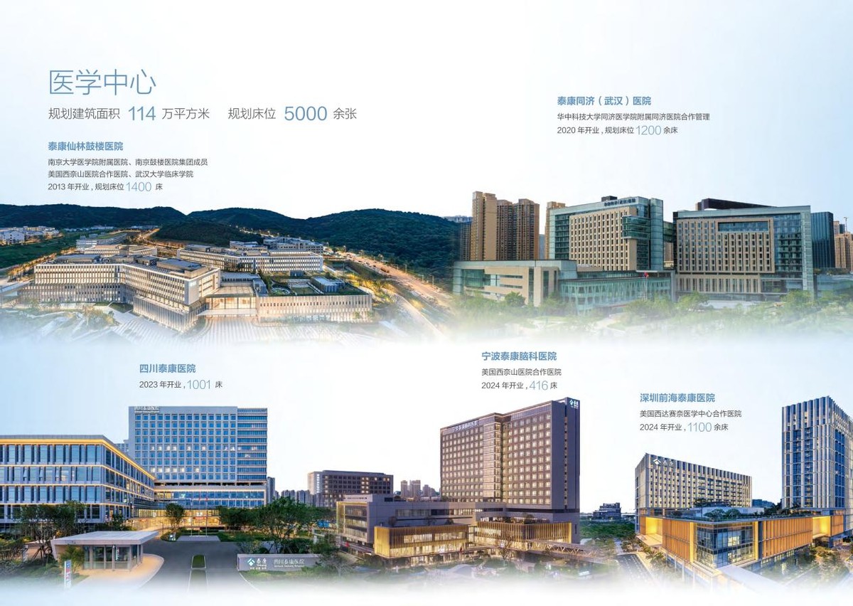 為實現這一目標,泰康在全國範圍內佈局實體醫療機構。截至2024年,泰康已經在全國建成並運營泰康仙林鼓樓醫院、泰康同濟(武漢)醫院、四川泰康醫院、寧波泰康腦科醫院、深圳前海泰康醫院五大醫學中心。為了滿足老年人的醫療健康需求,實現醫養結合的養老模式,泰康在每一家養老社區均配備康復醫院。不僅如此,打造泰康拜博口腔,讓保險業與口腔醫療行業深度融合,也體現了泰康頗為豐富的業態發展。這個遍佈全國的醫療服務網絡,與泰康的保險業務相結合,建成龐大的醫療保健網絡,能為患者提供一站式、覆蓋全生命週期的醫療健康服務。