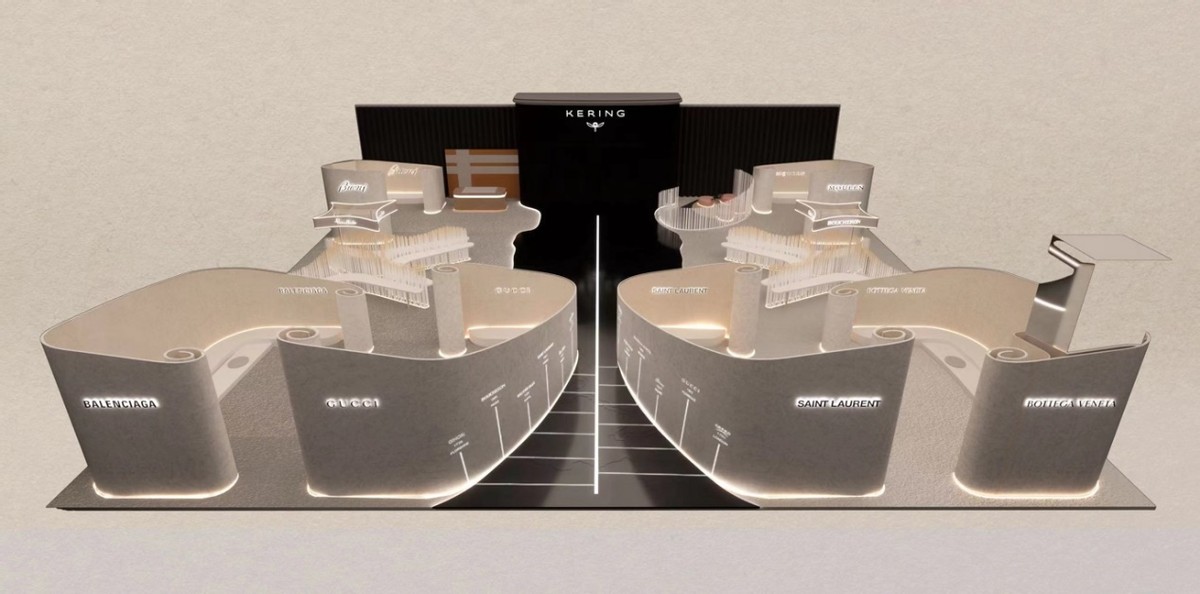消費品展區匯聚全球三大精品集團、三大快時尚集團、八大美妝日化企業。其中,開雲集團將攜旗下全品牌參展。據開雲集團方面透露,此次參展在展陳設計上頗費心思,展館整體結構以中式卷軸為核心靈感元素,通過錯落有致的曲面卷軸模塊,打造出一系列流線型品牌展區及功能區。結合宣紙質感的牆面、大理石和竹製傢俱,以及波浪狀立杆燈柱隔斷,既營造出曲水流觴的清雅園林意境,又體現了關於傳統材料與工藝的當代解讀。