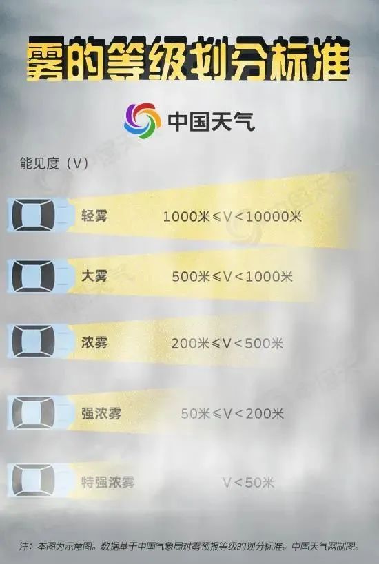 根據能見度的大小,可分為輕霧、大霧、濃霧、強濃霧和特強濃霧5個等級。
