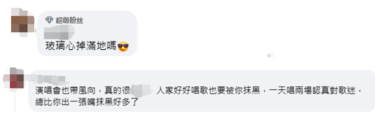 對於王義川的説辭,還有島內網友稱,“玻璃心掉滿地嗎”“人家好好唱歌也要被你抹黑,一天唱兩場認真對歌迷,總比你出一張嘴抹黑好多了”。