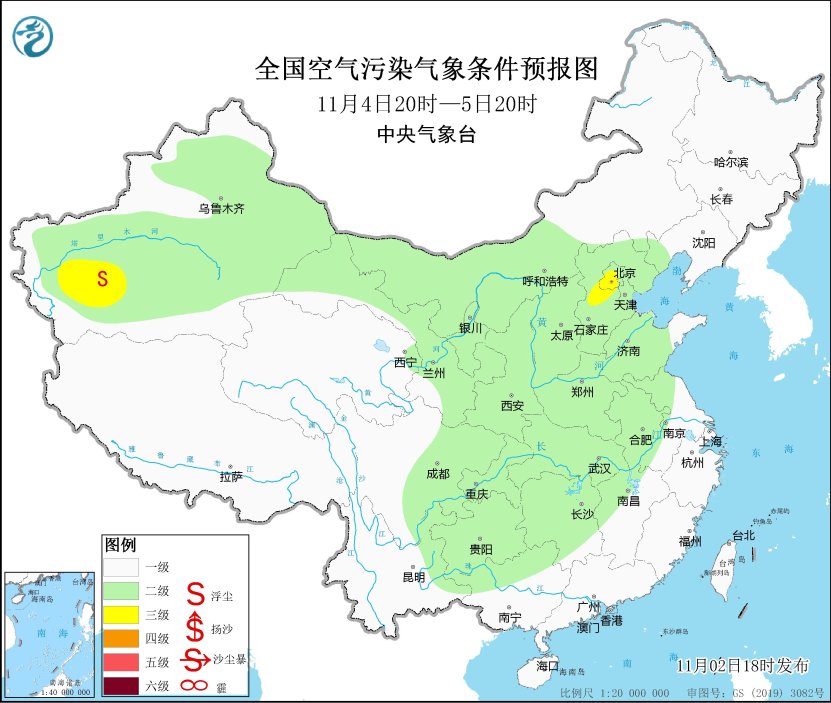 2日夜間至3日上午,區域中南部大氣擴散條件較差,有輕至中度霾,局地地區有重度霾,夜間至早晨時段有大霧。3日中午起,受冷空氣影響,霧霾天氣減弱消散。此外,11月2日早晨至上午,北京、天津、河北中南部、山西中南部等地有大霧天氣,其中,北京中南部、河北中南部等地的部分地區有能見度不足500米的濃霧,局地有能見度不足200米的強濃霧。