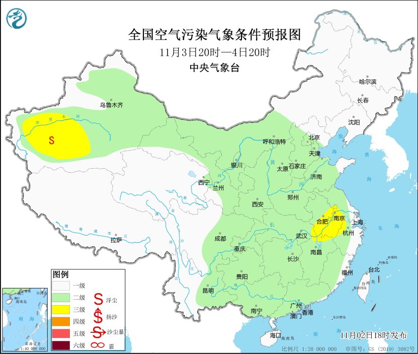 2日夜間至3日上午,華北中南部、黃淮西部等地大氣擴散條件較差,有輕至中度霾,部分地區有重度霾。3日中午起,受冷空氣影響,上述區域霧霾天氣減弱消散。