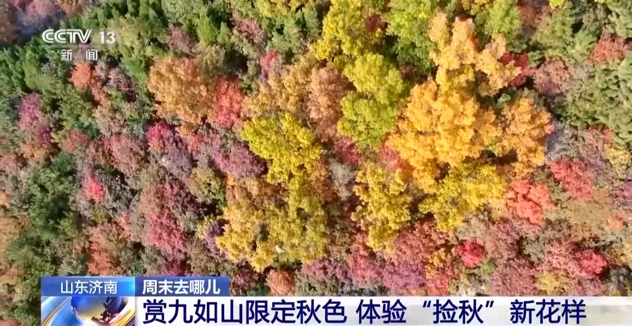 *總枱記者 宋文瑾:*我現在就在濟南九如山,今天是週末,前來登高賞秋的遊客不少。從鏡頭中能看到,現在這裏的彩葉已經變色,進入了觀賞期。連綿的羣山,色彩斑斕,紅的似火、黃的勝金、綠的似玉,大自然用最豐富的調色板,將山巒染得絢麗多彩。據瞭解,今天景區的遊客將在1萬人次左右,為了讓遊客能夠舒心出遊,景區聯合交通部門,對景區外的主幹道進行疏導調度,盡最大可能保障道路暢通。