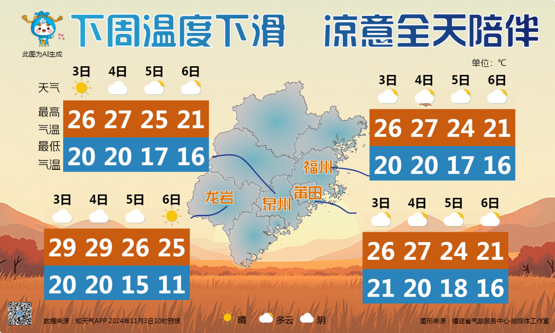 未來三天福州氣温明顯下滑