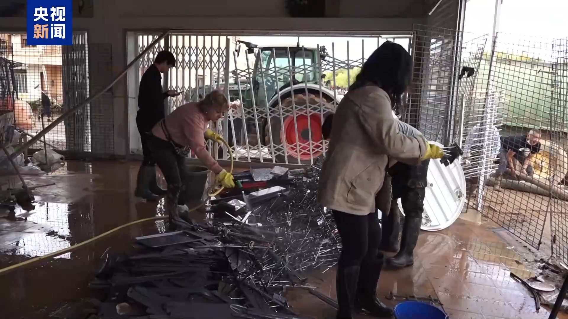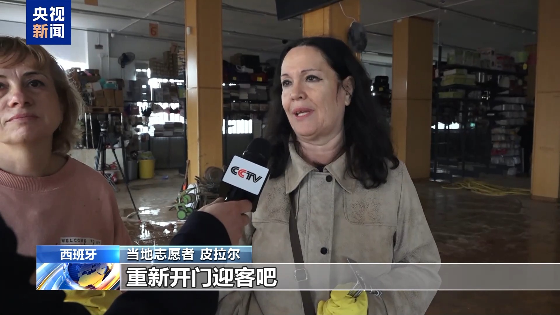 *當地志願者 皮拉爾:*我們自發來這裏幫幫忙,清理一下這些掛鈎等等,使其之後能夠重新掛上貨架。我們想盡點力,因為他們人很好,我們很欣賞他們。希望他們能夠儘早恢復,重新開門迎客吧。