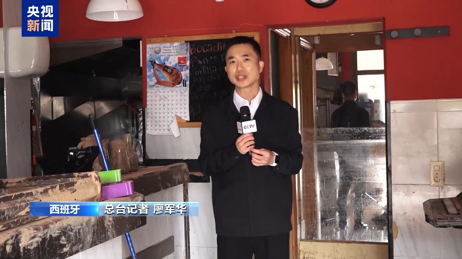*總枱記者 廖軍華:*我現在是在烏鐵爾鎮的一間小餐吧。當地居民告訴我,這是他們平常最常光顧的餐吧之一,但現在已經空無一人。從我旁邊的吧枱可以看到依然有大量淤泥,而順着我手的方向看過去,從鏡子上的水漬可以想象當時的水位上漲到了我胸前的高度。
