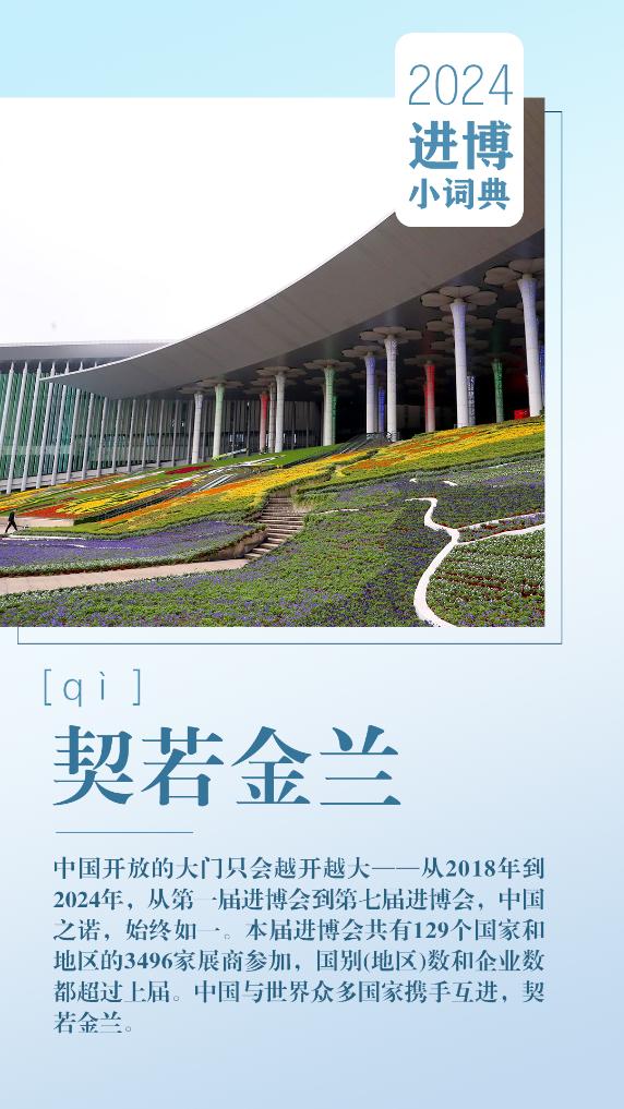 中國開放的大門只會越開越大——從2018年到2024年,從第一屆進博會到第七屆進博會,中國之諾,始終如一。本屆進博會共有129個國家和地區的3496家展商參加,國別(地區)數和企業數都超過上屆。中國與世界眾多國家攜手互進,契若金蘭。