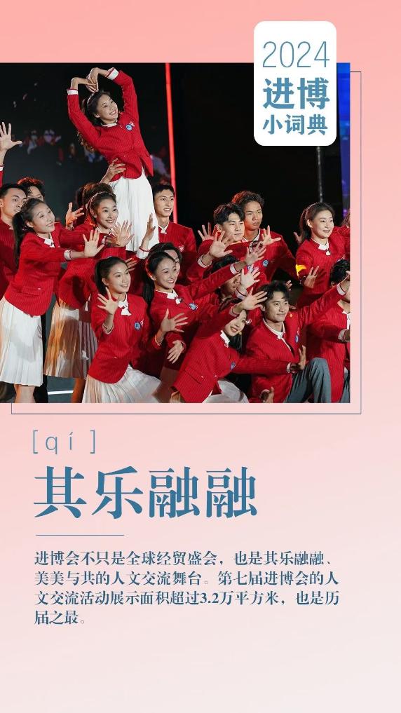 進博會不只是全球經貿盛會,也是其樂融融、美美與共的人文交流舞台。第七屆進博會的人文交流活動展示面積超過3.2萬平方米,也是歷屆之最。