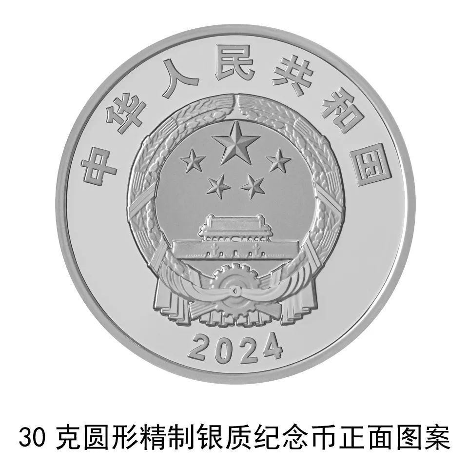 30克圓形銀質紀念幣為精製幣,含純銀30克,直徑40毫米,面額10元,成色99.9%,最大發行量20000枚。