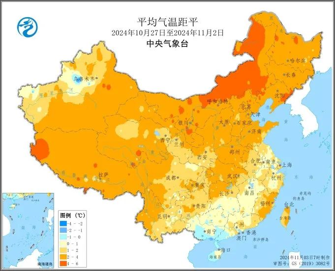 上週(2024年10月27至11月2日),全國大部農區氣温較常年同期偏高,其中東北地區、內蒙古、西北地區大部、華北、黃淮、江漢大部等地氣温偏高2至4℃,內蒙古中部和東部偏高4至6℃。