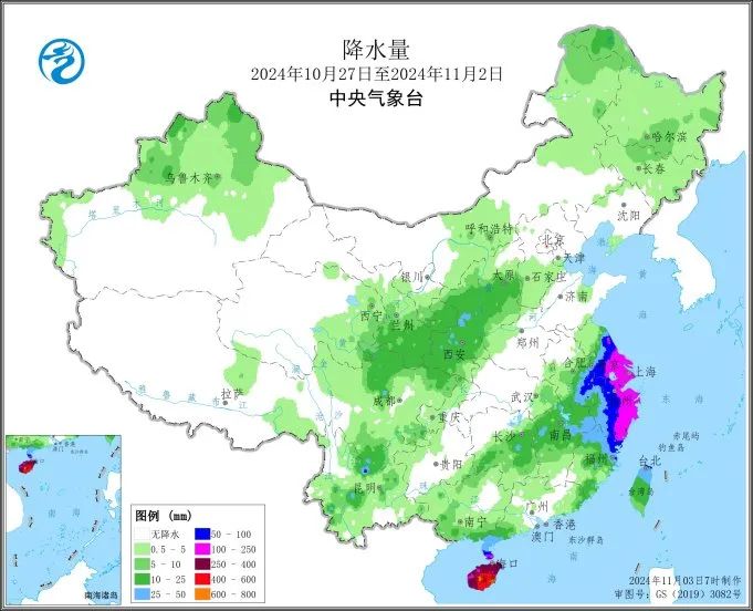 新疆北部、西北地區東南部、湖南中東部、江西中部和北部等地出現5至25毫米降水;受颱風影響,江蘇南部、安徽東南部、浙江大部、福建北部等地降水量有25至250毫米,海南有250至600毫米,上述地區大部降水量較常年同期偏多5成至4倍,局地偏多4倍以上;全國其餘農區降水不足5毫米或無降水。