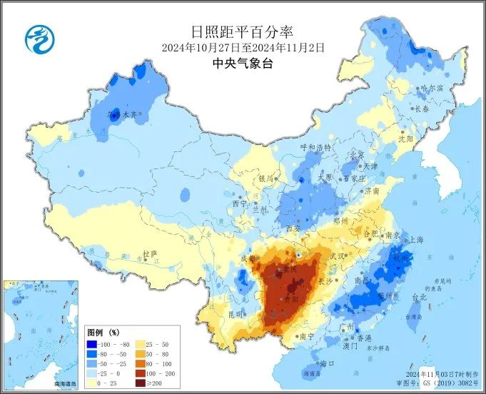 全國大部農區日照時數接近常年同期或偏少,其中東北地區北部、內蒙古東北部、新疆北部、西北地區東南部、江南東部和南部、華南東部等地偏少3至8成;江淮北部、江漢、西南地區東部、湖南西部、廣西西部等地偏多3成至2倍。