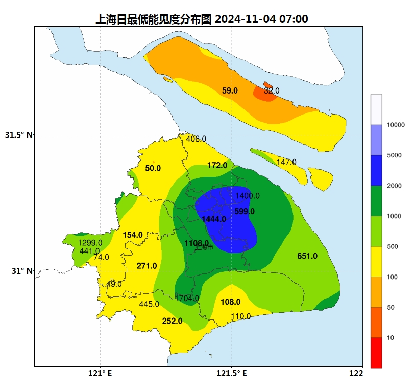 昨夜今晨,一場輻射降温效應下的大霧悄然出現,上海大部出現了能見度不足500米的霧,嘉定、崇明、奉賢、青浦、寶山等地局地能見度小於200米,其中,崇明和嘉定局部地區最為“朦朧”,能見度不足100米。