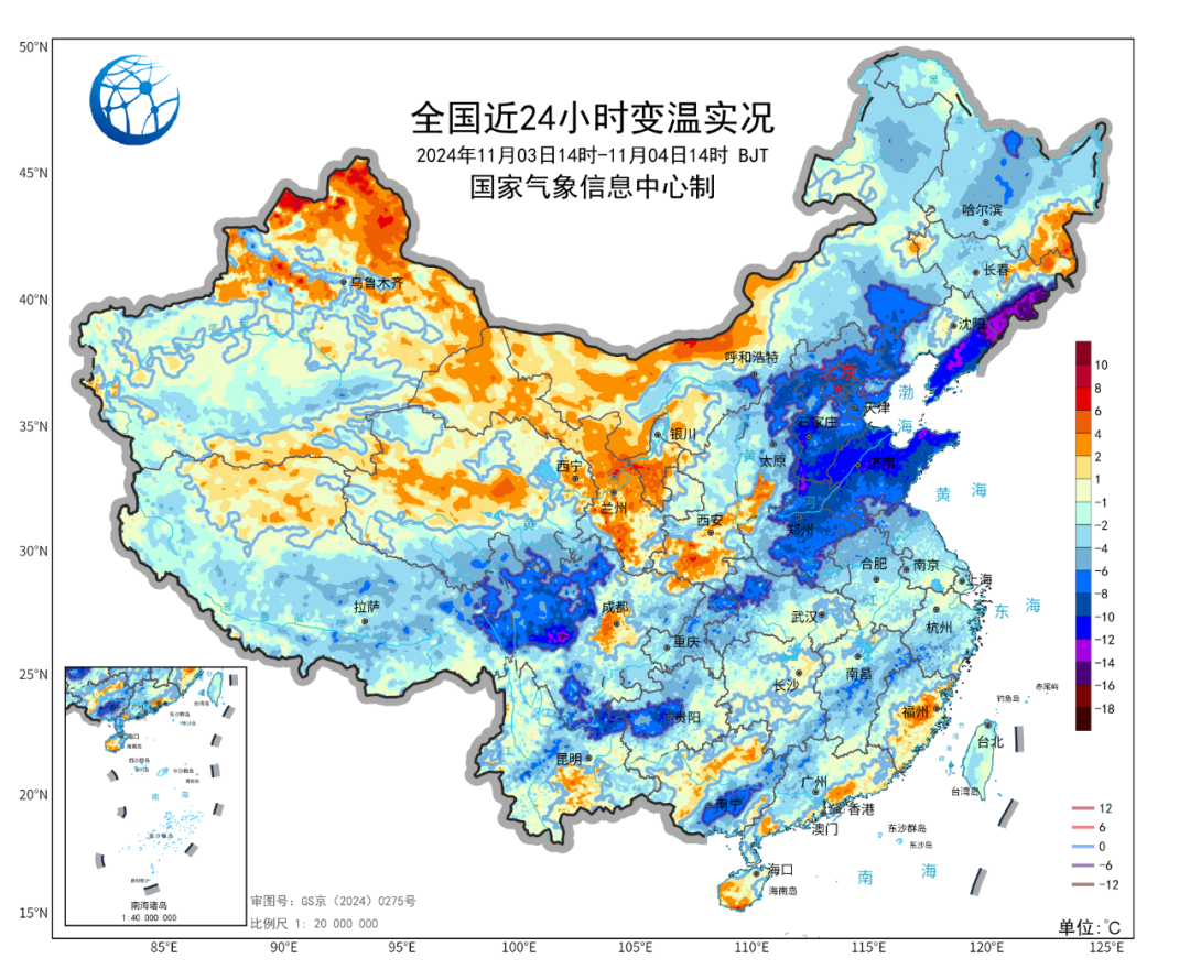 昨天(11月3日)開始,新一股強勁的冷空氣已經登場,今天它還在繼續東移南下,給中東部地區帶來了明顯的降温。