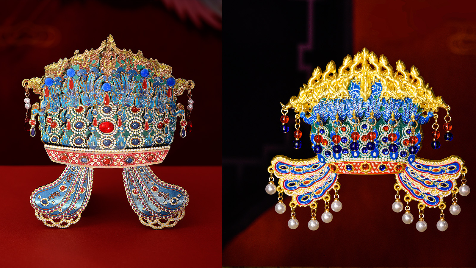 左圖為木製鳳冠冰箱貼,右圖為AR金屬鳳冠冰箱貼。中國國家博物館供圖