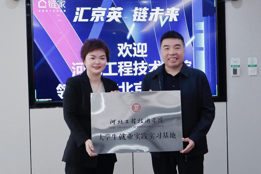 近年來,北京鏈家與院校的合作不斷深入和前置化。以河北工程技術學院為例,自2018年起便與北京鏈家開展校企合作,目前已有72位校友在北京鏈家工作,他們在各自的崗位上取得了不俗的成績。此次交流中,河北工程技術學院還為北京鏈家頒發了“大學生就業實踐實習基地”牌匾,雙方表示將在課程設置、學分置換、人才培養等方面進一步加強合作,共同為社會培養更多優秀人才。