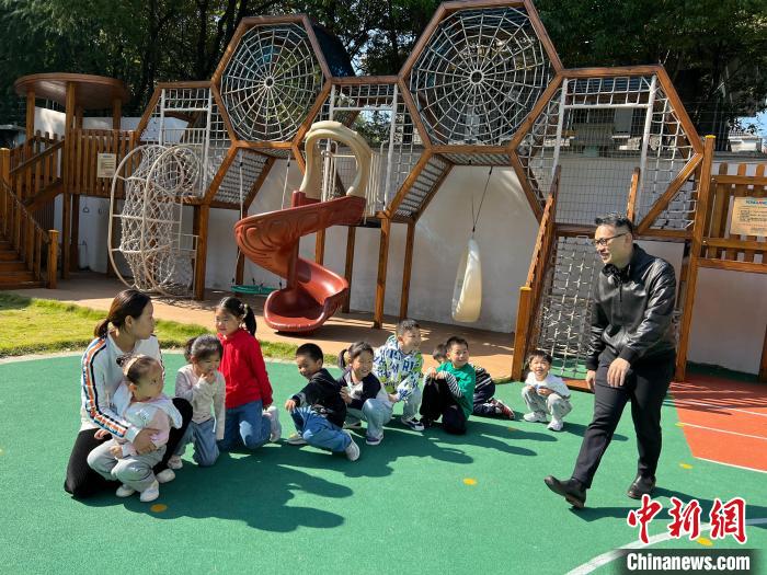 日前,在南京鼓樓區老菜市的常樂幼兒園,陽光灑滿操場,孩子嬉鬧跑跳。幼兒園負責人柯鑫和幼師一起,帶着孩子們在操場上玩“老鷹捉小雞”“我們都是木頭人”的遊戲,處處歡聲笑語。