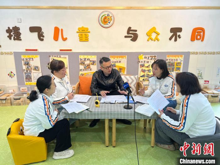 日前,柯鑫和幼兒園老師們一起開會研討教學方案。中新網記者 朱曉穎 攝