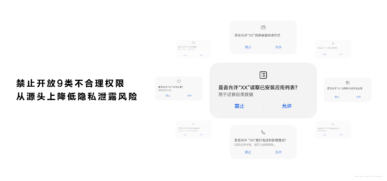 從具體功能上看,為了降低用户的管理成本,從根源上避免用户隱私泄露,鴻蒙NEXT全面梳理了所有系統授權,禁止開放了9類不合理權限,包括讀取已安裝應用列表、訪問短信、訪問存儲文件、創建桌面快捷方式、獲取設備信息、顯示懸浮窗、訪問通話記錄、應用內安裝應用、撥打電話和管理通話。這些權限的禁止,使得那些企圖通過竊取用户隱私數據來謀取利益的應用無法得逞。