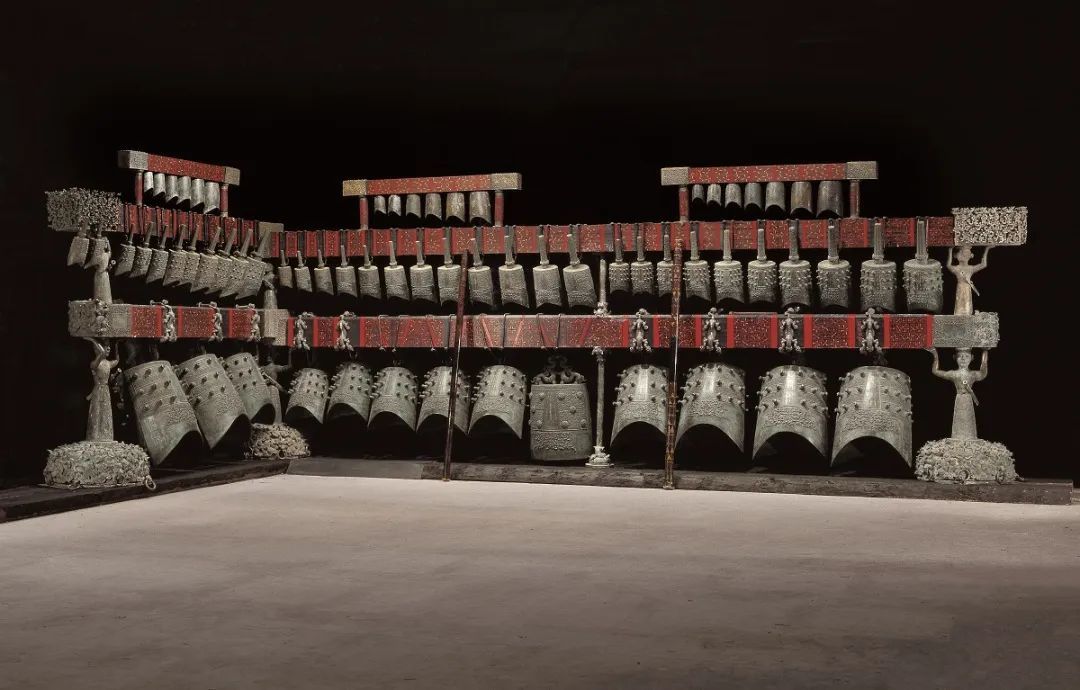湖北省博物館的另一件鎮館之寶——曾侯乙編鐘由大小不同的扁圓鍾按照音調高低的次序排列,懸掛在巨大的鐘架上,用丁字形的木槌和長形的棒分別敲打銅鐘,能發出不同樂音。整套鐘體用渾鑄、分鑄法鑄成,代表了中國先秦禮樂文明與青銅器鑄造技術的最高成就。