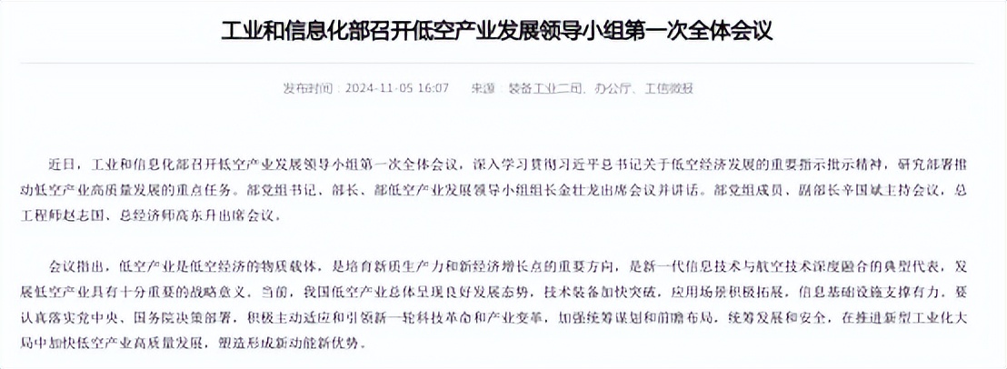 【環球網財經綜合報道】近日,工業和信息化部召開低空產業發展領導小組首次全體會議,就如何推進低空產業的高質量發展進行了深入研討和全面部署。