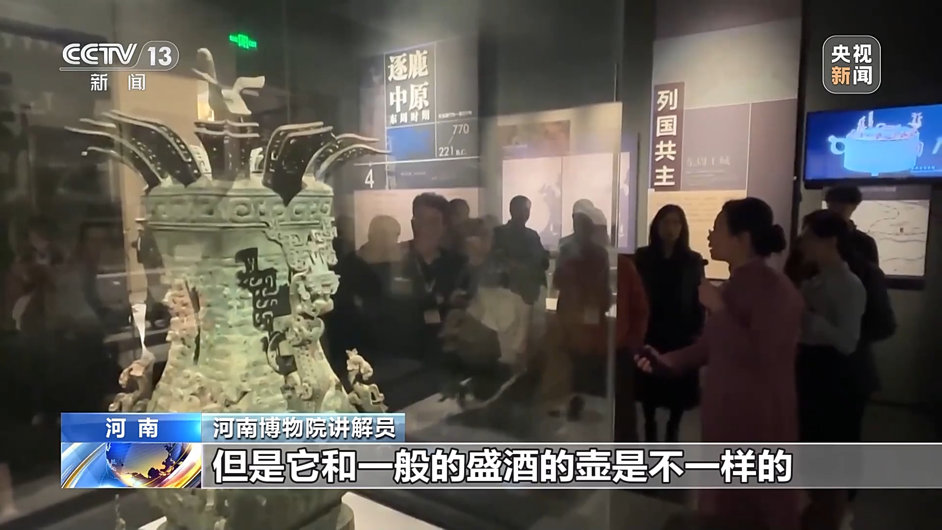 *河南博物院講解員:*這個也是一個壺,但是它和一般盛酒的壺是不一樣的,我們可以看到它上面滿布的花紋。