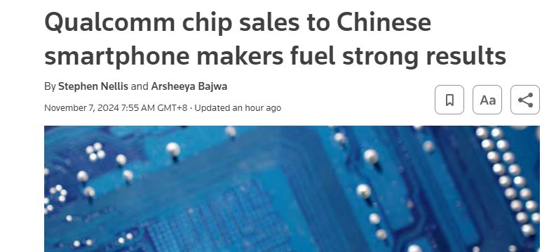 【環球網財經綜合報道】11月7日,據路透社消息,芯片設計公司高通於近日發佈了其最新的業績預測,預計本季度的銷售額和利潤將超越華爾街的預期。這一積極表現主要得益於中國旗艦智能手機的密集推出,為高通帶來了強勁的銷售動力。
