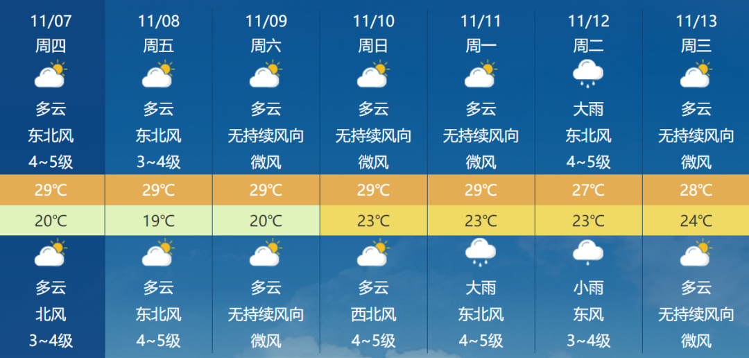 最低氣温:北部山區16-19℃,沿海地區19-22℃,市區20℃;