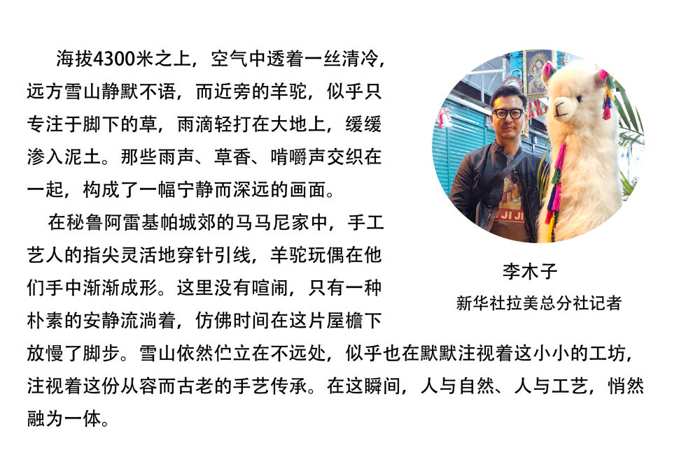 ↑羊駝毛製品手工藝人奧斯瓦爾多·馬馬尼在秘魯阿雷基帕
