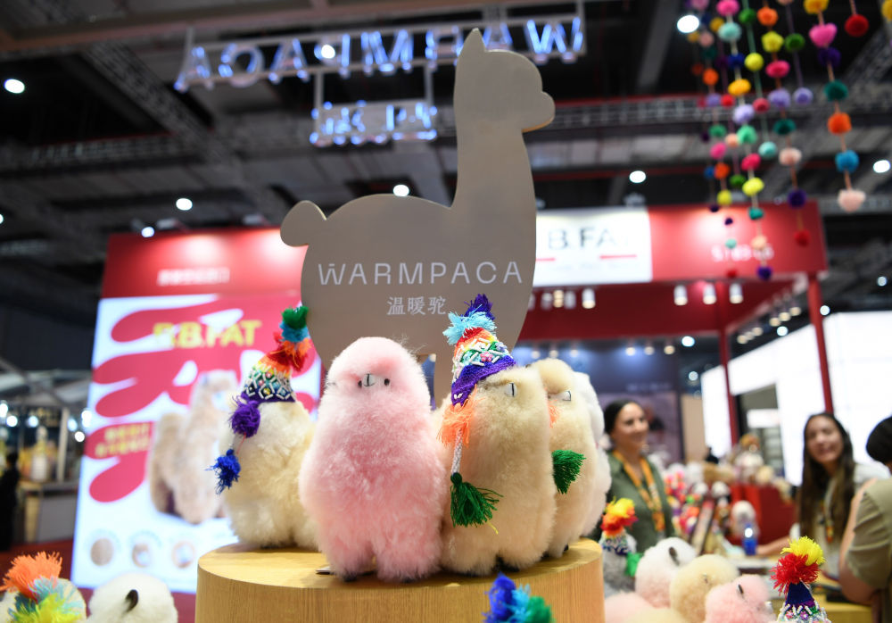 ↑第七屆進博會秘魯“温暖駝”展台