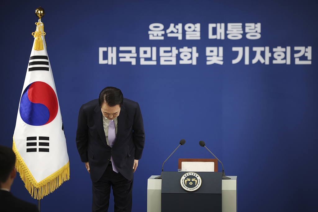 韓聯社介紹稱,尹錫悦當天先就其身邊人牽涉種種爭議引咎自責,併為此向國民道歉。尹錫悦表示,近兩年來自己馬不停蹄地工作,國民可能覺得其有不足之處,但他真心陪伴在國民左右。不管自己有多努力,但仍發生了讓國民擔心的事情。“作為總統,不應找藉口辯解,一切因我疏忽與不德所致,我對此向國民表示由衷的歉意。”