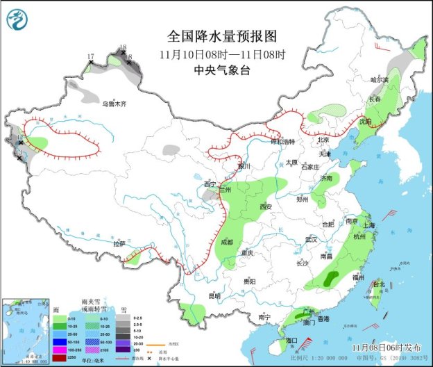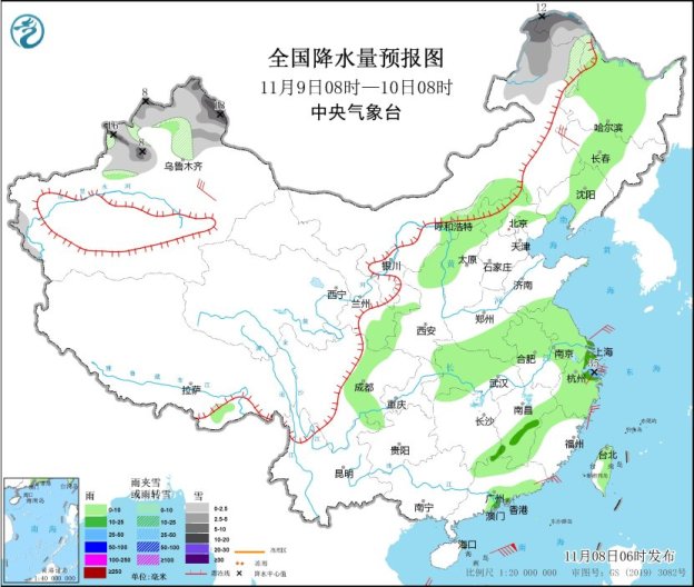 昨日,受冷空氣影響,新疆出現大風降温和雨雪天氣,預計今天冷空氣還將繼續影響新疆,塔城、阿勒泰、沿天山等地的部分地區有中到大雪,局地暴雪;大部地區將有4~6℃降温,局地降温超過8℃,並將伴有5~6級大風,陣風7~8級,山口地區風力可達9~10級。9日至10日,冷空氣將東移影響西北地區東部、內蒙古、東北地區等地,上述地區有4~6級大風,氣温下降4~8℃,內蒙古東部局地降温超過10℃,內蒙古東北部、東北地區有小雨或雨夾雪或雪,局地中到大雪。
