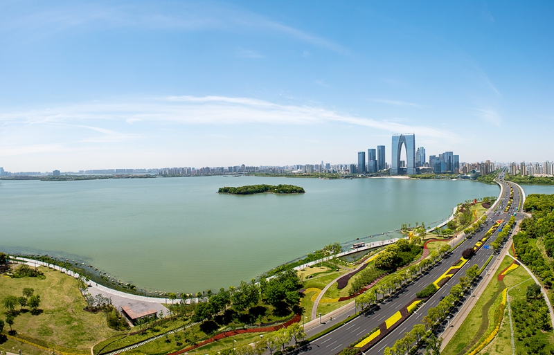 蘇州工業園區堅持“產城融合”和“一張藍圖繪到底”,統籌佈局生產、生活、生態空間,着力營造宜居宜業環境,實現“水鄉阡陌”向“現代化新城”重大變遷。