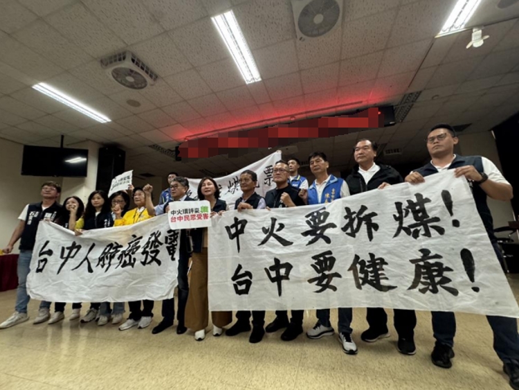 據報道,國民黨民意代表在中火舉起布條,上面寫着“中火要拆煤、台中要健康”“台中人肺癌發電”“增氣減煤跳票”,以抗議中火增氣卻不拆燃煤機組。