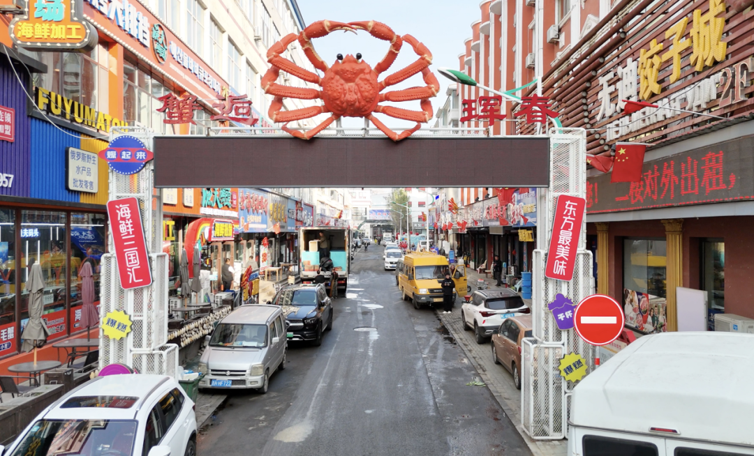 在琿春市區,有一條名為“蟹”逅琿春的海鮮一條街。各個品種的帝王蟹都能在這裏找到,商家提供加工服務,鮮活海鮮現撈現做,為食客們提供一站式服務。